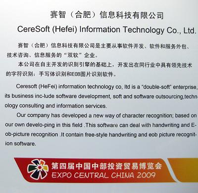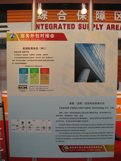 位于高(gāo)新區(qū)的(de)賽智公司是(shì)安徽省軟件(jiàn)協會(huì)的(de)理(lǐ)事(shì)單位,也(yě)是(shì)合肥市(shì)十大(dà)服務外(wài)包企業(yè)之一(yī),受邀參加了(le)第四屆中國(guó)中部投資貿易博覽會(huì)。