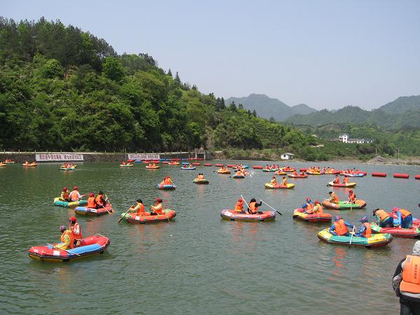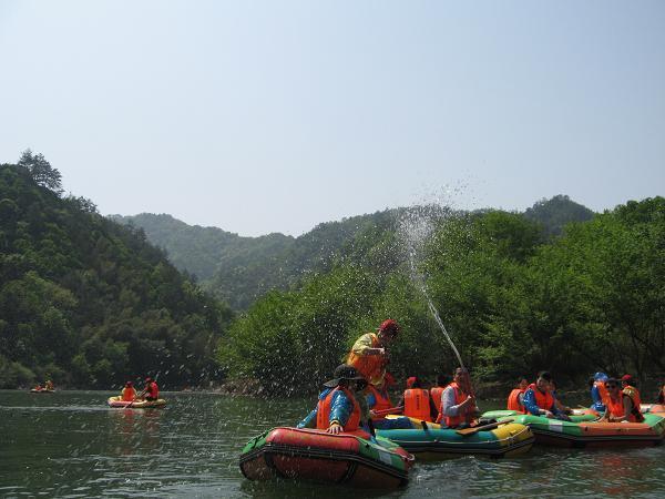 【藍(lán)水(shuǐ)河(hé)漂流】:坐(zuò)落在黃(huáng)山(shān)腳下(xià)新明(míng)鄉(xiāng)境內(nèi)的(de)藍(lán)水(shuǐ)河(hé)漂流全程6公裡(lǐ),漂流時(shí)間(jiān)90分(fēn)鐘(zhōng),沿途河(hé)道(dào)蜿蜒,水(shuǐ)流湍急,險灘相(xiàng)接,有(yǒu)驚無險。兩岸懸崖惟妙惟肖,峽谷遮天,怪石嶙峋,猶如(rú)鬼斧神工(gōng)。遠(yuǎn)近(jìn)錯(cuò)落而居的(de)粉牆黛瓦古村(cūn),與自(zì)然生(shēng)态和(hé)人(rén)文(wén)景觀融為(wèi)一(yī)體(tǐ),相(xiàng)得(de)益彰,構成了(le)一(yī)道(dào)天人(rén)合一(yī)的(de)綠(lǜ)色屏障。