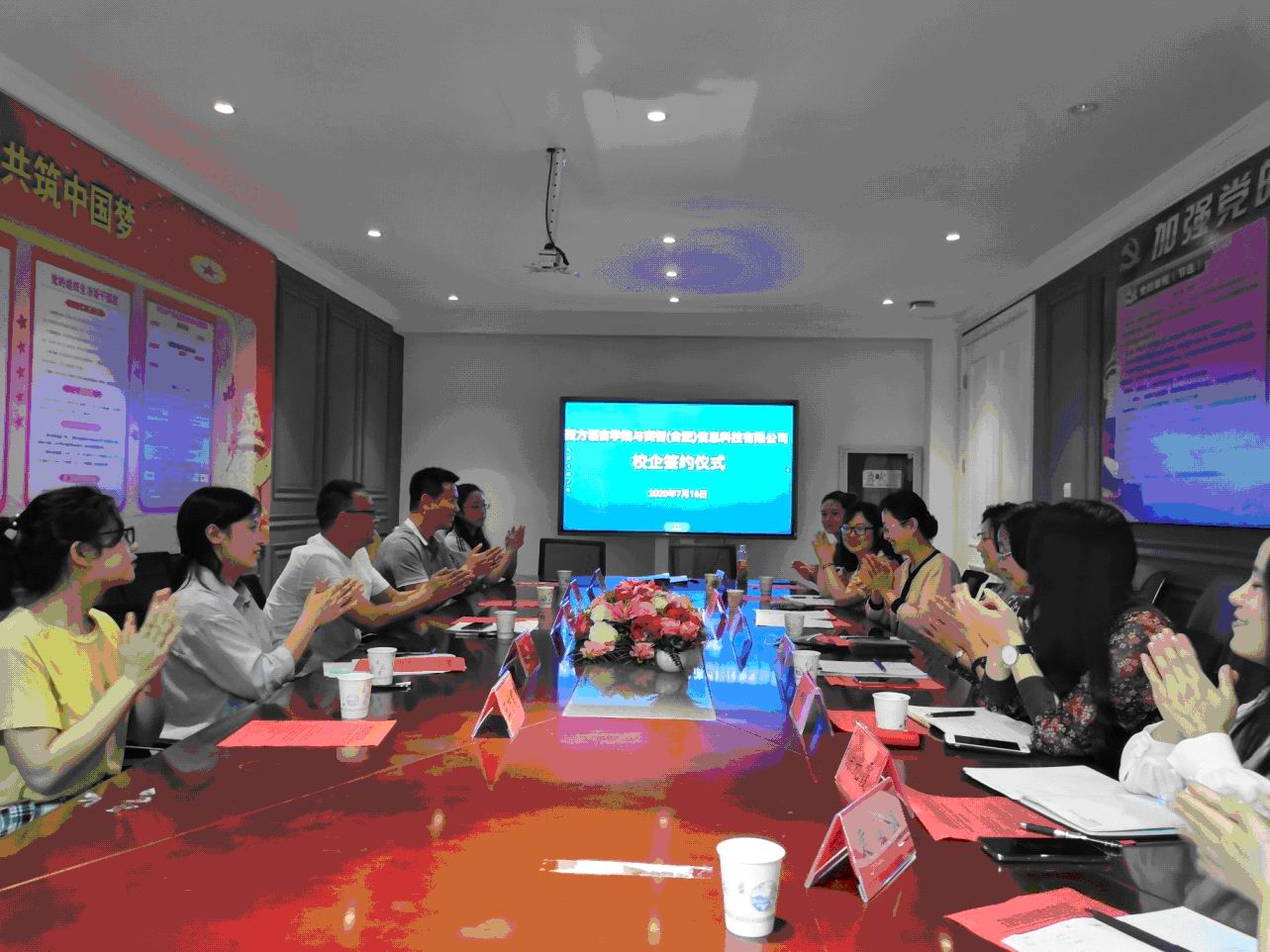 2020年(nián)7月(yuè)16日(rì),合肥三花聚頂信息科技有限公司與安徽外(wài)國(guó)語學院校(xiào)企合作(zuò)簽約儀式在西(xī)語學院101會(huì)議(yì)室順利舉行(xíng),公司總經理(lǐ)、副總經理(lǐ)、理(lǐ)賠部經理(lǐ)等與安徽外(wài)國(guó)語學院副院長(cháng)高(gāo)茜、西(xī)方語言學院院長(cháng)張文(wén)鳳以及其他(tā)有(yǒu)關領導出席了(le)簽約儀式。